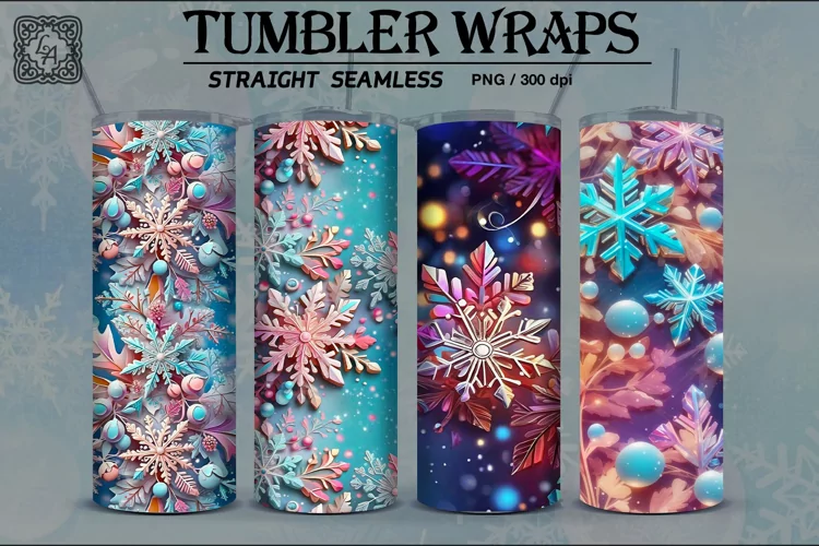 4 Christmas Snowflakes 20 oz Skinny Seamless Tumbler Wrap Sublimation Design PNG. Digital Download Template