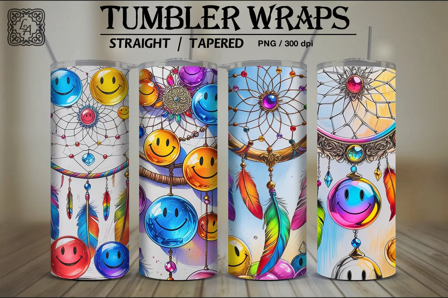 4 Smile Dreamcatcher Tumbler Wrap Sublimations, 20 oz example image 1