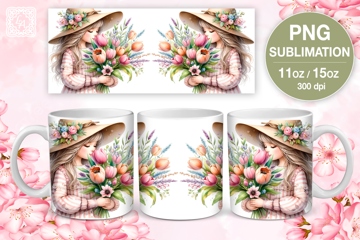 Mother's Day Mug Mug Sublimation Design Girls Sublimation Spring Flower Sublimation Blooming Sublimation Watercolor Mug Sublimation Valentine's Day Mug Sublimation Spring Mug Wrap Spring Beauty Spring Girl Mug