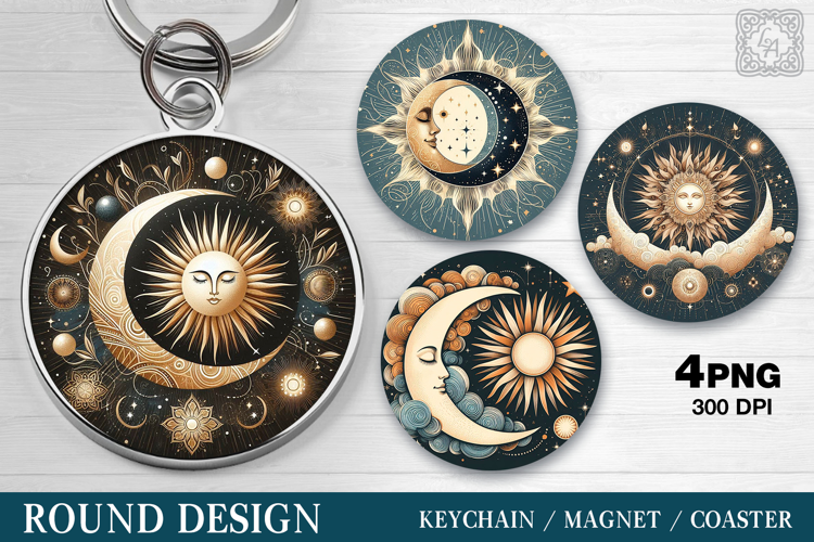 Round Pattern. Day & Night. Coaster/keychain/magnets design Sublimation, 4 PNG
