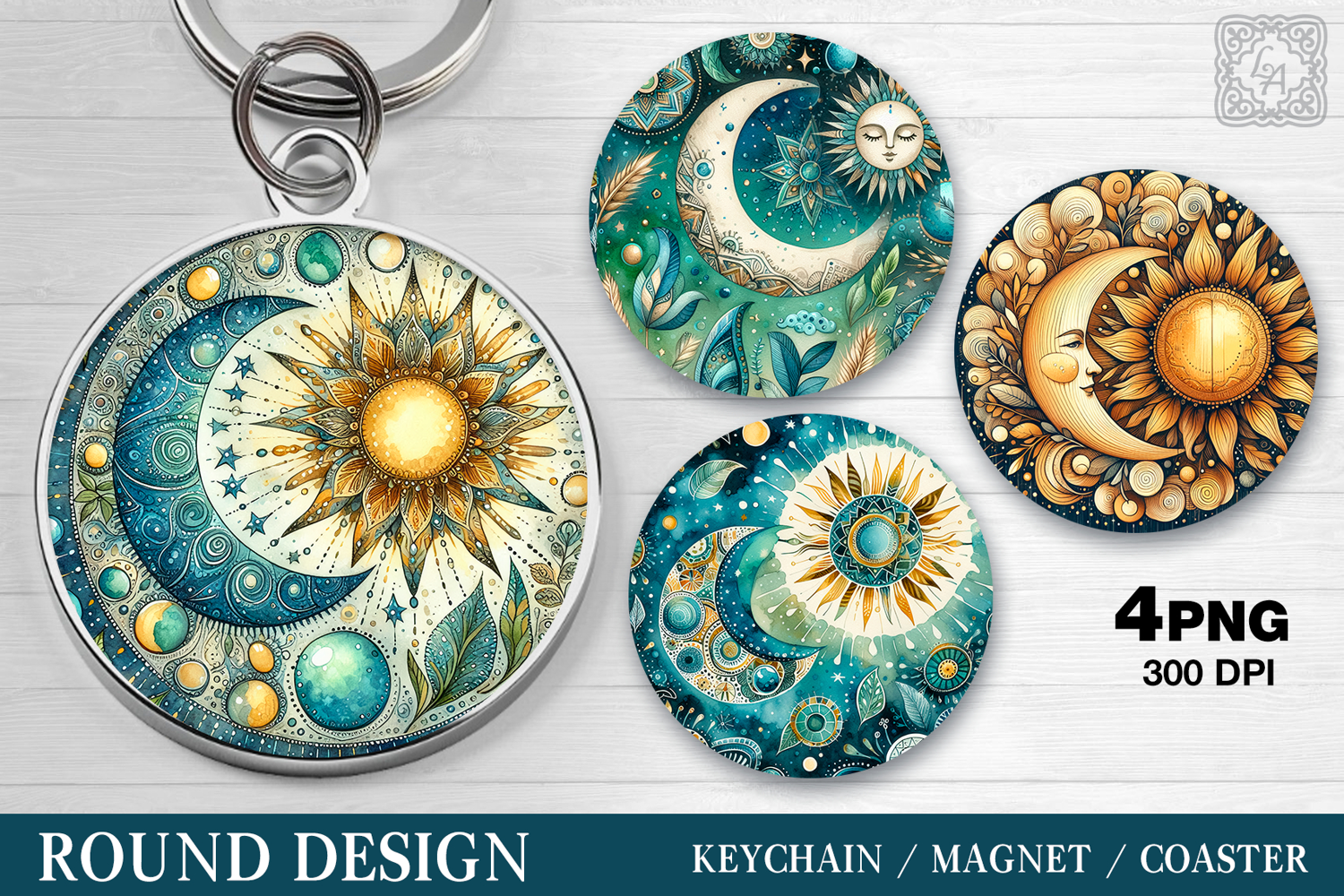 Round Pattern. Day & Night. Coaster/keychain/magnets design Sublimation, 4 PNG