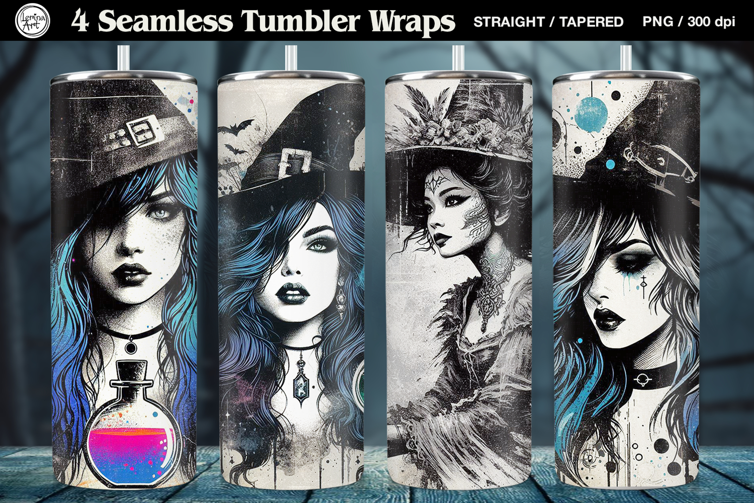 4 Grunge Witch 20 oz Seamless Skinny Tumbler Wrap Sublimations