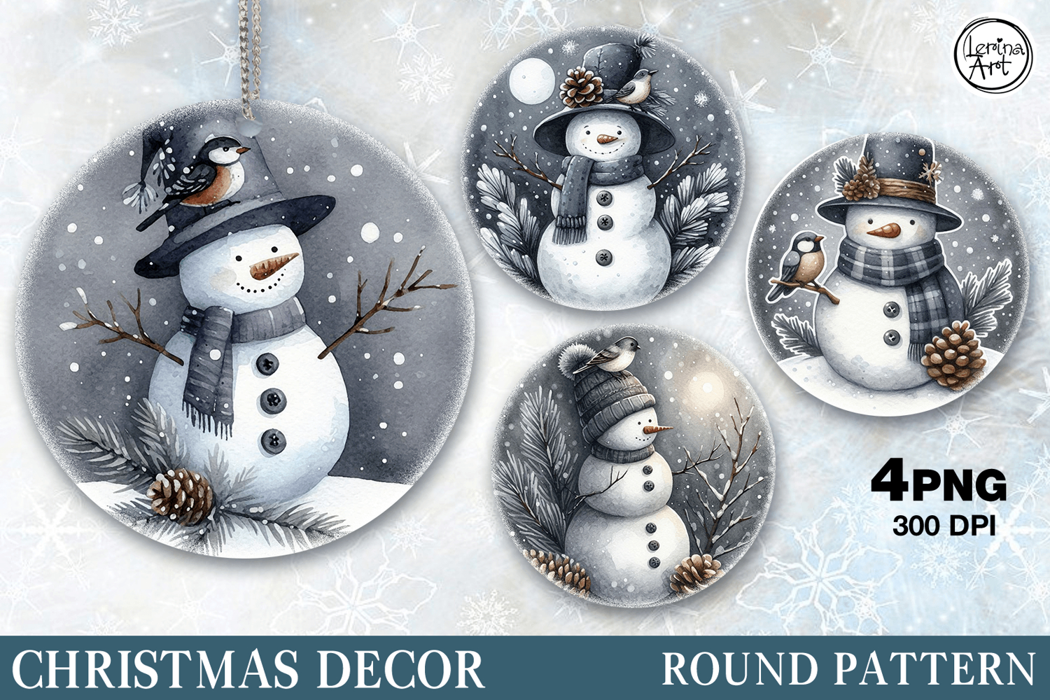Cute Snowman. Cristmas Decor Sublimation, 4 PNG