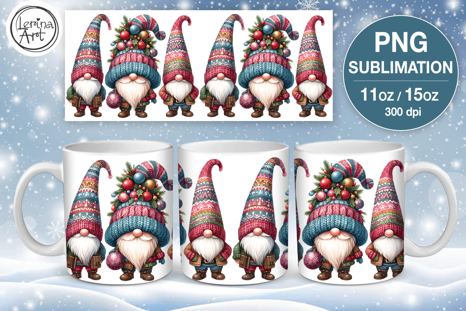Christmas mug wrap. 11&15oz GNOMES example image 1