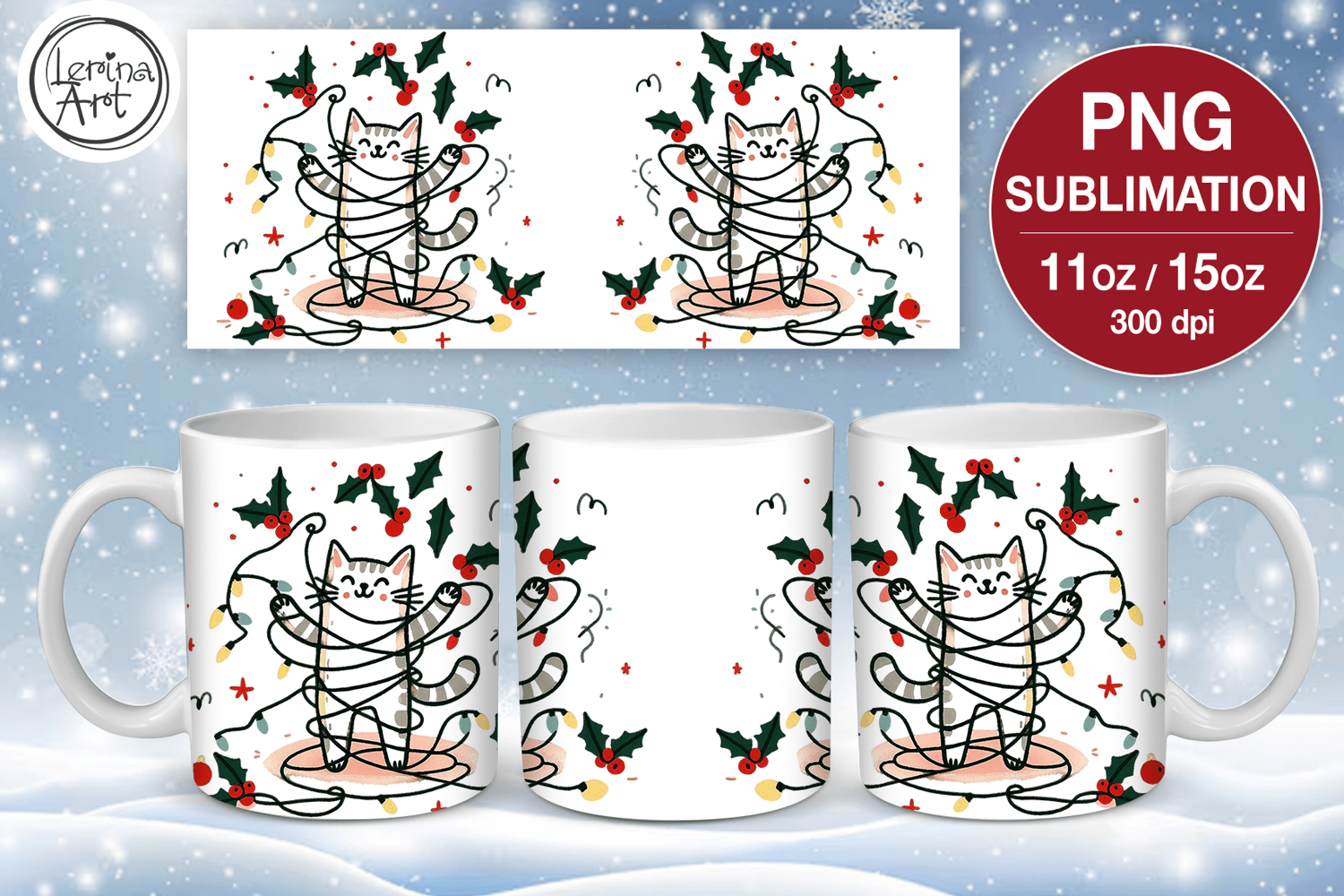 Christmas Lights Christmas Gift Cute Cat Christmas Mug Mug Sublimation Design Merry Christmas Mug Winter Mug Wrap Watercolor Christmas Sublimation Cute Christmas Mug Wrap Winter Themed Mug