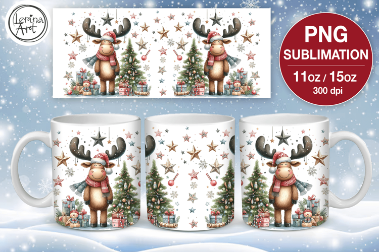 Christmas mug wrap. 11&15oz Christmas Elk example image 1