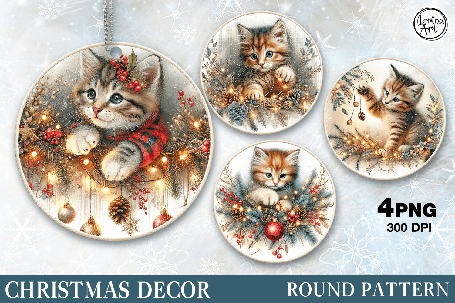 Kitty Christmas Decor Christmas Printable Cute Cat Cute Kitten Christmas Sublimation Christmas Tree Decor Round Christmas Ornament Coaster Sublimation Christmas Magnet