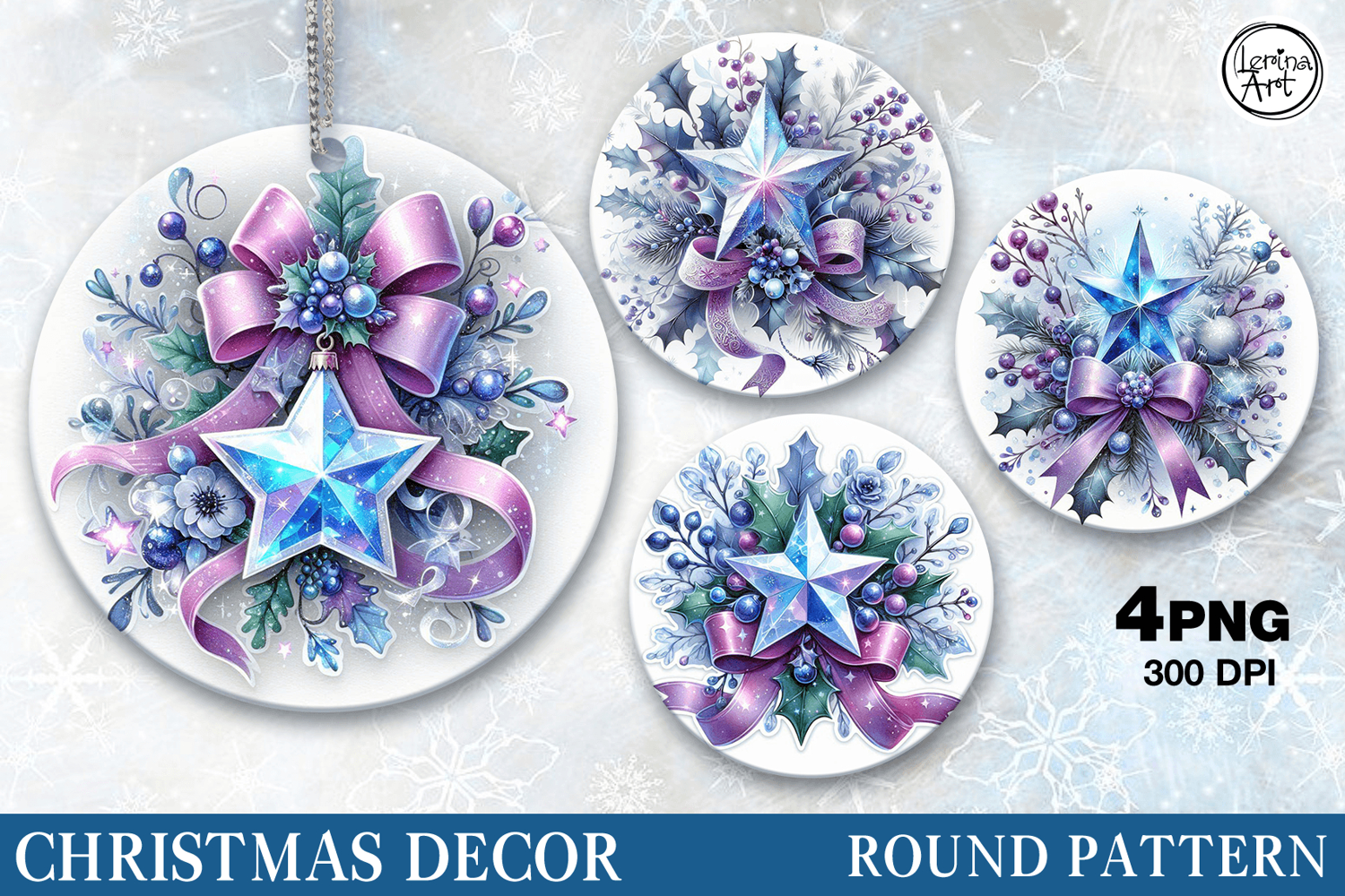 Chriastmas Star. Cristmas Decor Sublimation, 4 PNG
