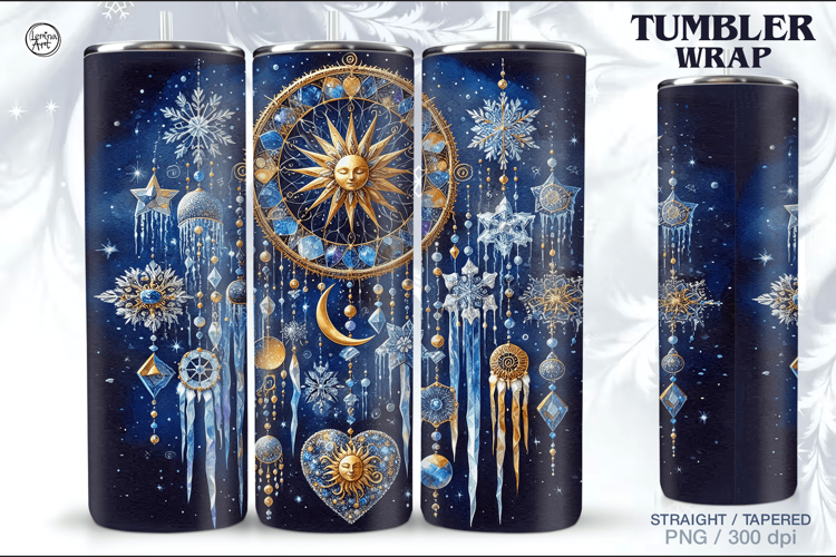 Boho Celestial Tumbler Wrap | Winter Dreamcatcher 20 oz