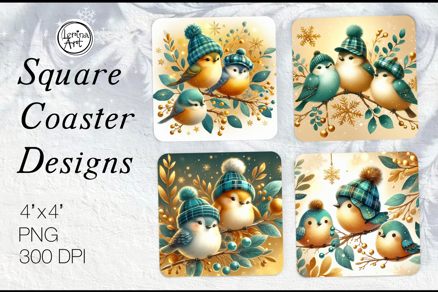 Cute Birds Christmas Coaster Sublimation, 4 PNG