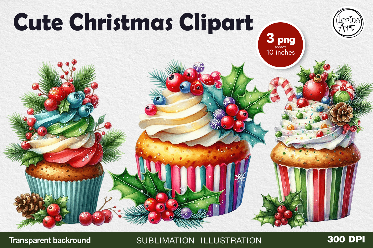 Cupcake Christmas Clipart Ginger Bread Scrapbooking Set Christmas Sweets Christmas Sublimation Sweet Christmas Cozy Christmas Christmas Cupcake Watercolor Sublimation