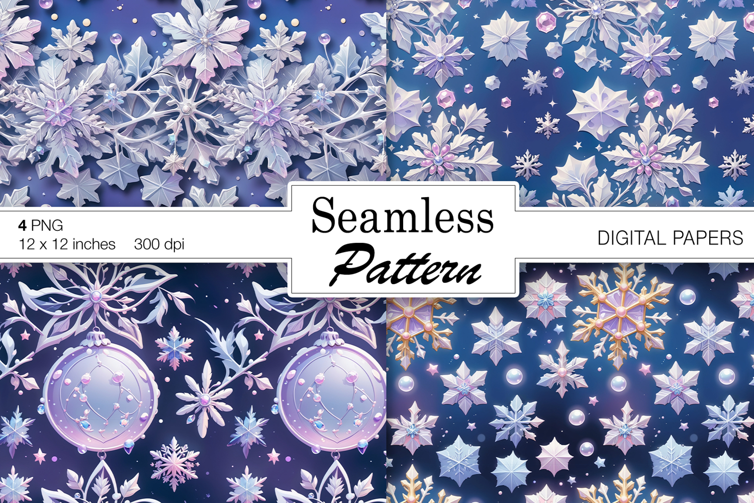 Christmas Snowflakes/ Winter Art digital papers. Seamless example image 1