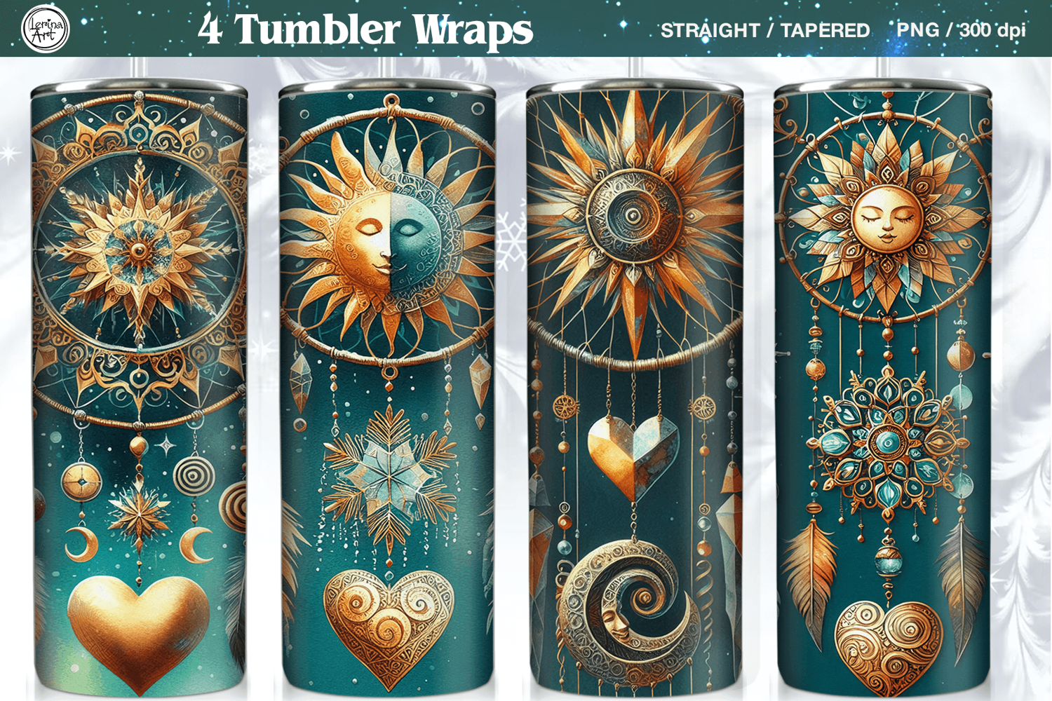4 Boho Celestial Tumbler Wrap | Winter Dreamcatcher 20 oz