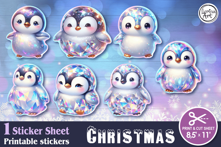 Christmas. Print & Cut Stickers PNG / Christmas Penguin