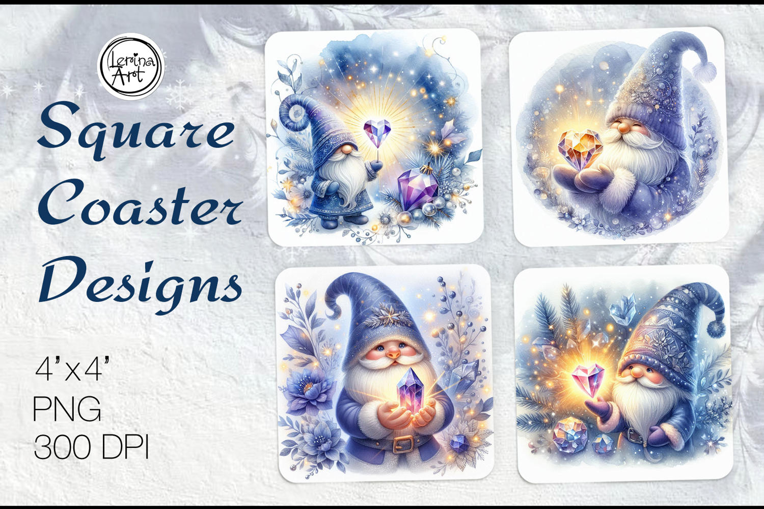 Cute Gnomes Christmas Coaster Design, 4 PNG example image 1