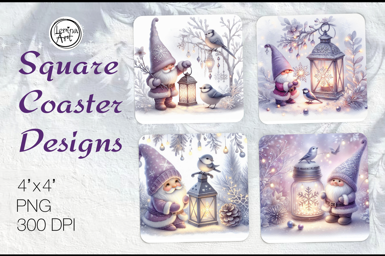 Cute Gnomes Christmas Coaster Design, 4 PNG