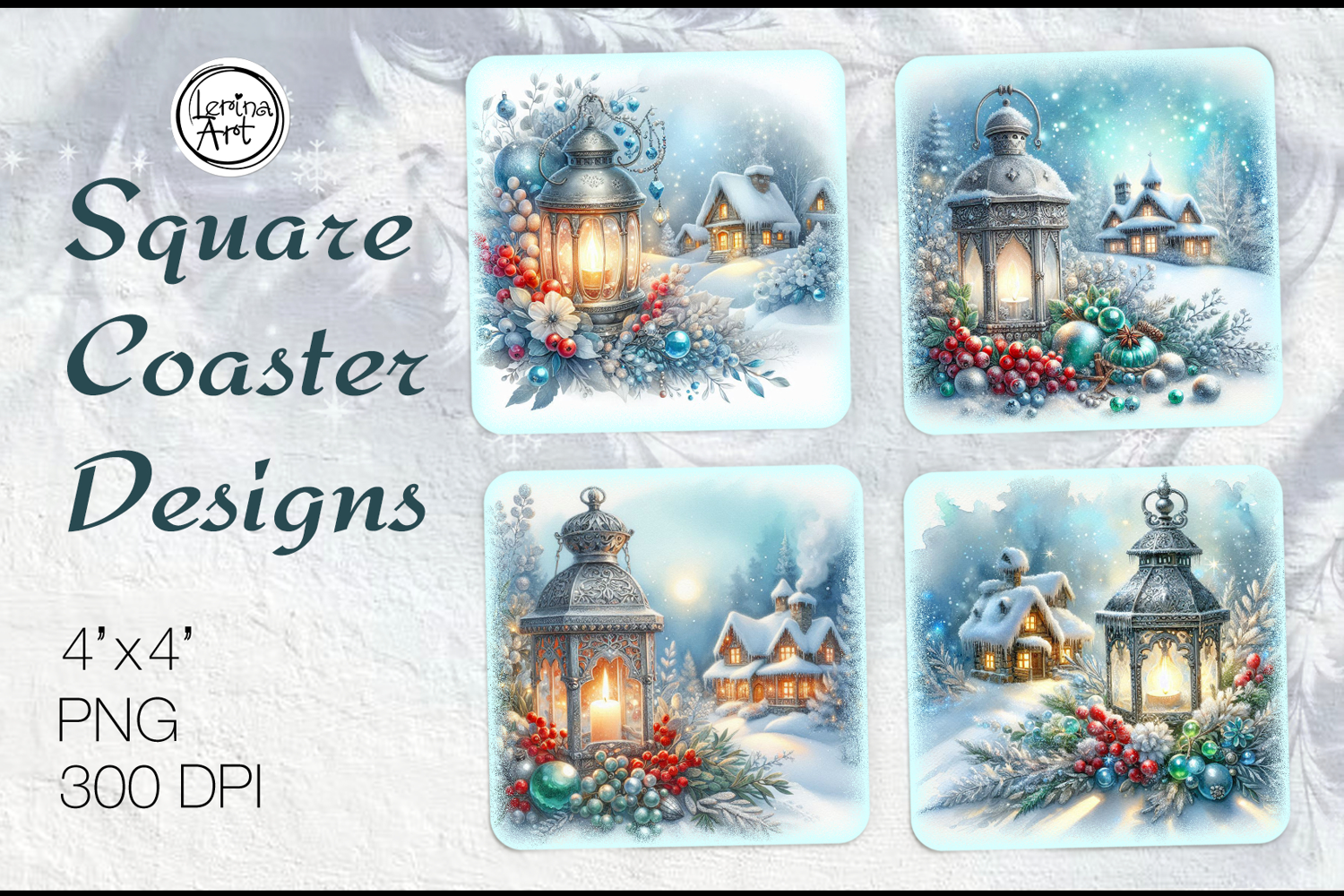 Frosty Holiday Coasters | Christmas Coaster Design, 4 PNG