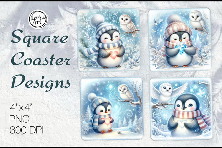 Cute Animals| Penguin Christmas Coaster Sublimation, 4 PNG