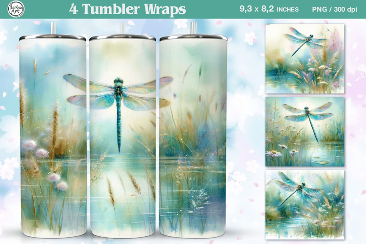 4 Dragonfly Tumbler Sublimation, 20 oz Tumbler Wrap example image 1