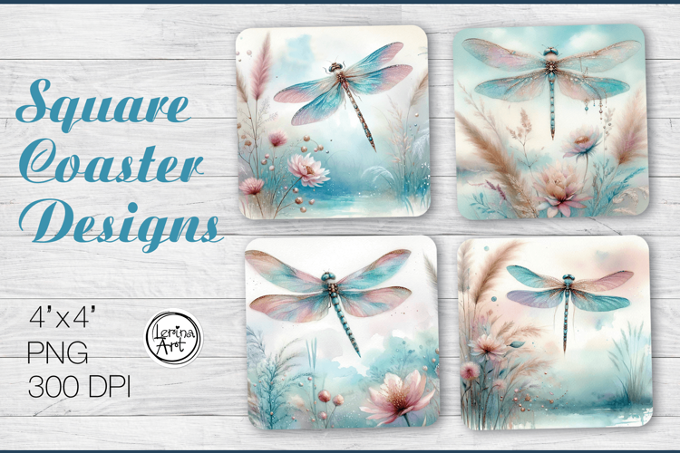 Coaster Rainbow Coaster Printable Coaster Summer Coaster Watercolor Coaster Under The Sky Dragonfly Square Coaster Sublimation Rainbow Dragonfly Coffee Coaster Png