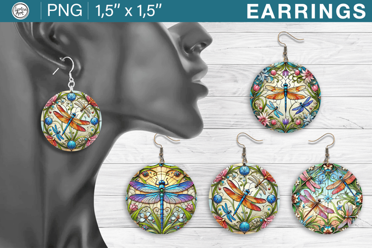 Dragonfly earrings sublimation designs, 4 PNG example image 1