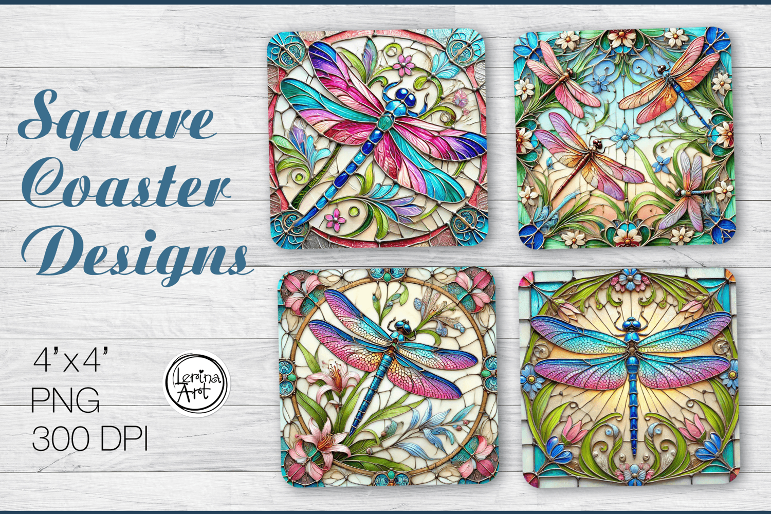 Coaster Stained Glass Rainbow Coaster Printable Coaster Summer Coaster Watercolor Coaster Dragonfly Square Coaster Sublimation Rainbow Dragonfly Coffee Coaster Png