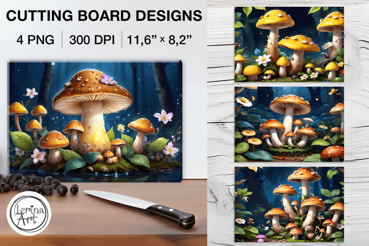 Mashrooms Cutting Board Designs / 4 PNG