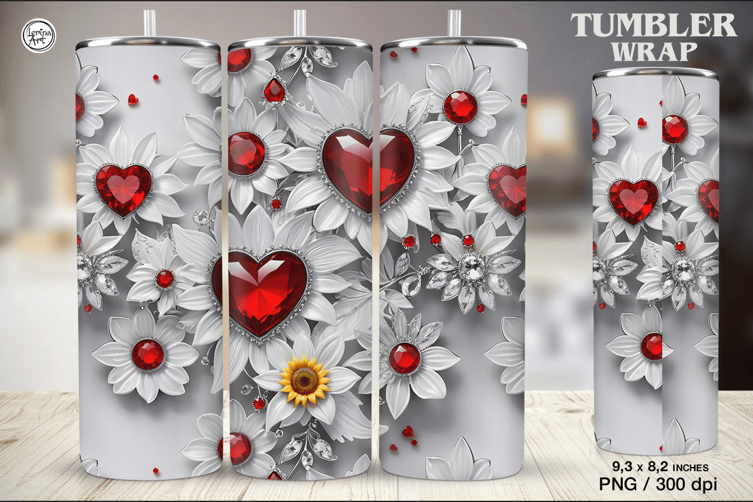 Heart 20 oz Skinny Tumbler Wrap Sublimation Design PNG. Digital Download Template