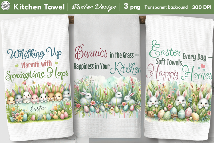 Easter Kitchen Towel, Spring Dish Towel, 3 PNG