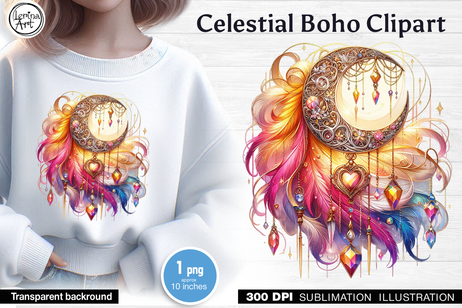 Celestial Boho Sublimation, print design PNG