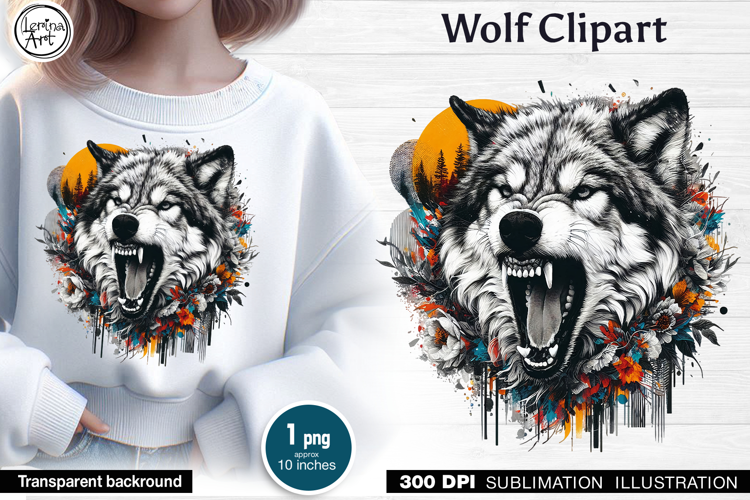 Wolf Sublimation design PNG example image 1