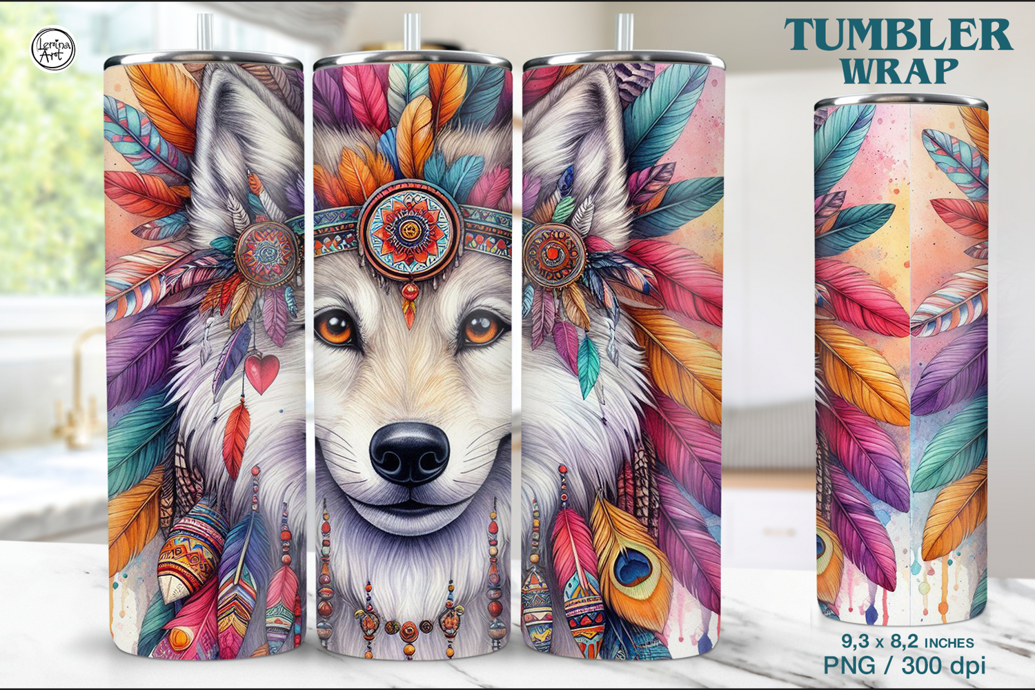 Wolf Dream Catcher Feather Boho Sublimation Tumbler Sublimation Tumbler Warp Tumbler Sublimation Png Seamless Tumbler Sublimation Boho Tumbler Wrap Native Tumbler Wrap