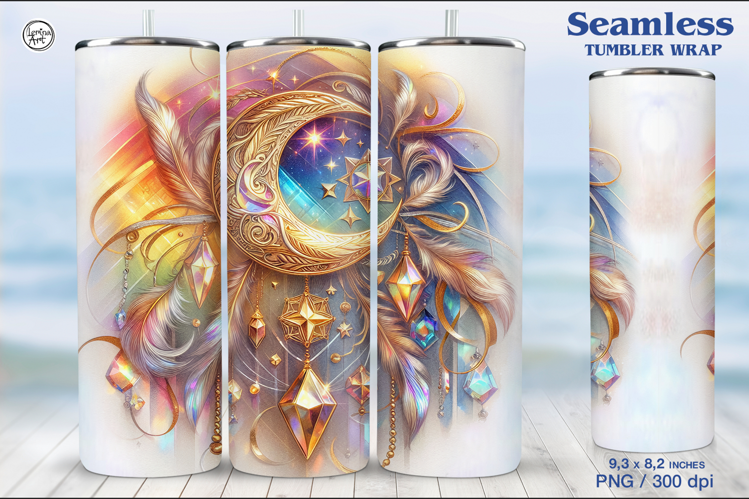 Dream Catcher Boho Sublimation Rainbow Tumbler Sun And Moon Design Feather Sublimation Dreamcatcher Tumbler 20 Oz Sublimation Wrap Celestial Tumbler Wrap Boho Celestial Tumbler Boho Celestial Vibes