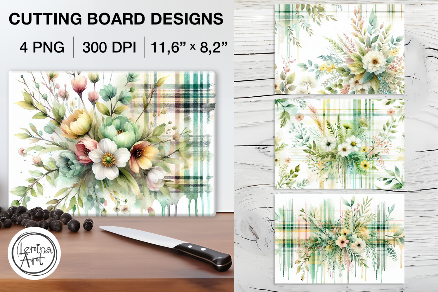 Spring Tartan Cutting Board Designs / 4 PNG example image 1