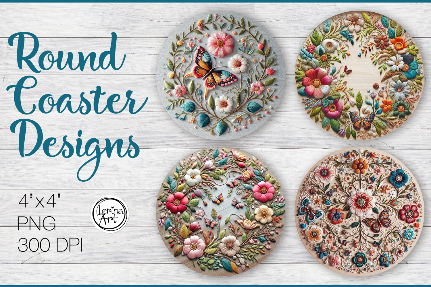 Coaster Round Coaster Printable Coaster Summer Coaster Embroidered Flower Embroidery Sublimation Embroidered Sublimation Coffee Coaster Png Embroidered Coaster Summer Flower Coaster
