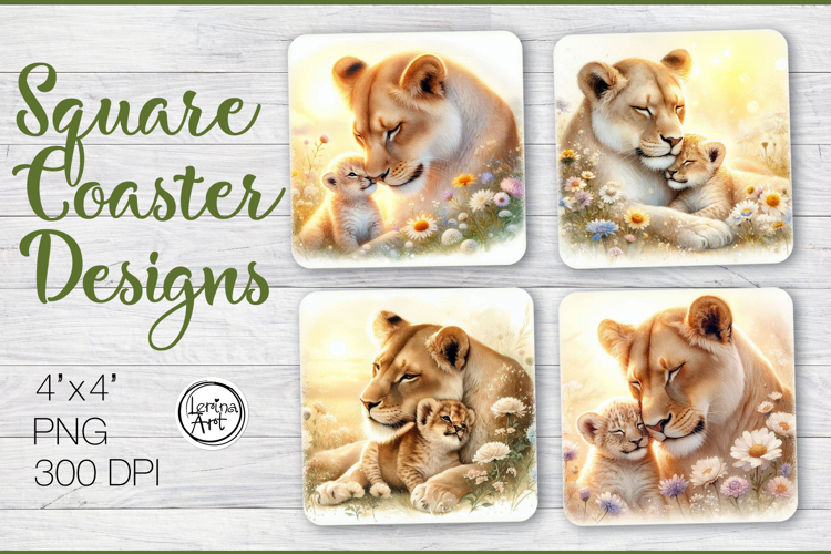 Coaster Mom Sublimation Mother's Day Sublimation Lion Sublimation Mother Sublimation Animal Coaster Square Coaster Sublimation Coffee Coaster Png Cute Coaster Celestial Round Pattern