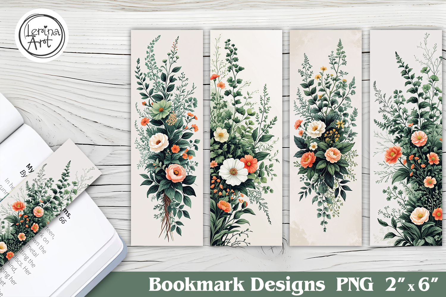 This product includes 4 floral bookmark designs 2"x6"