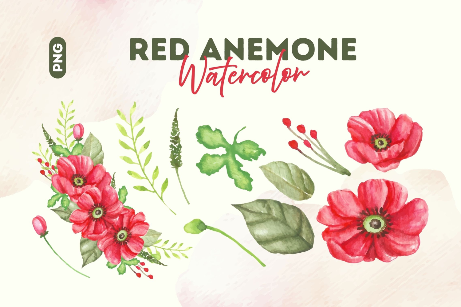 Similar Design Products to Red Anemone Watercolor Clipart Set