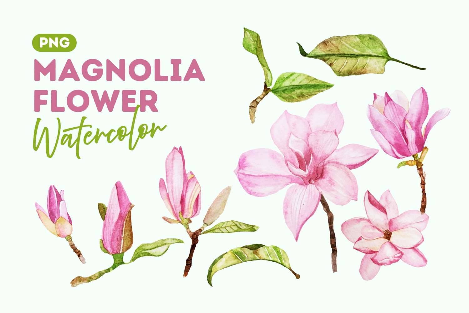 Bring a touch of elegance and natural charm to your designs with this Watercolor Magnolia Flower Clipart Set 🌸🎨
