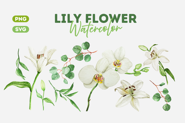Watercolor Elegant Design Nature Floral Flower Bloom Botanical Lily White