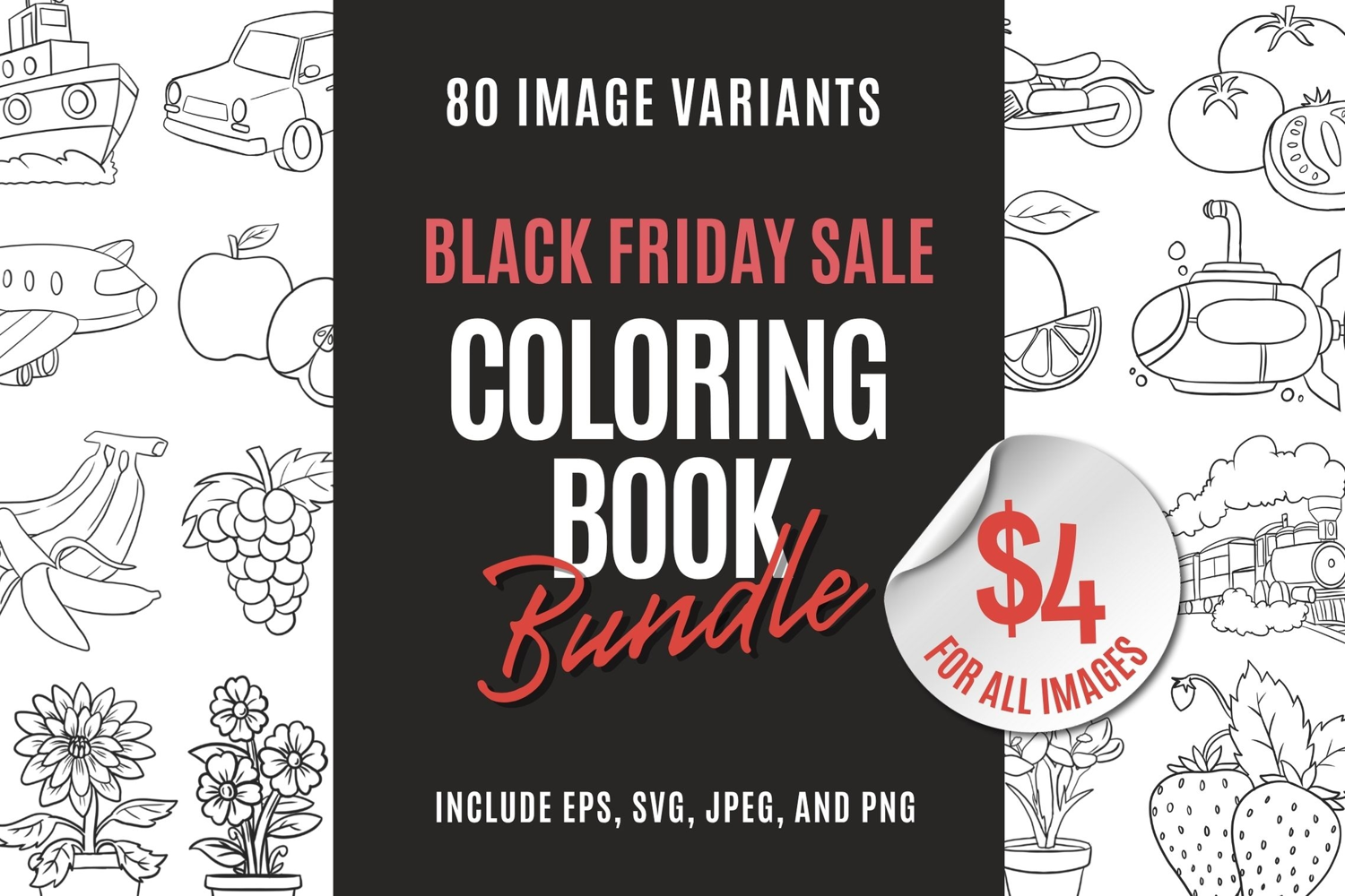 Black Friday Coloring Book Bundle – 80 Fun Designs | Limited Time Deal! 🖍️✨