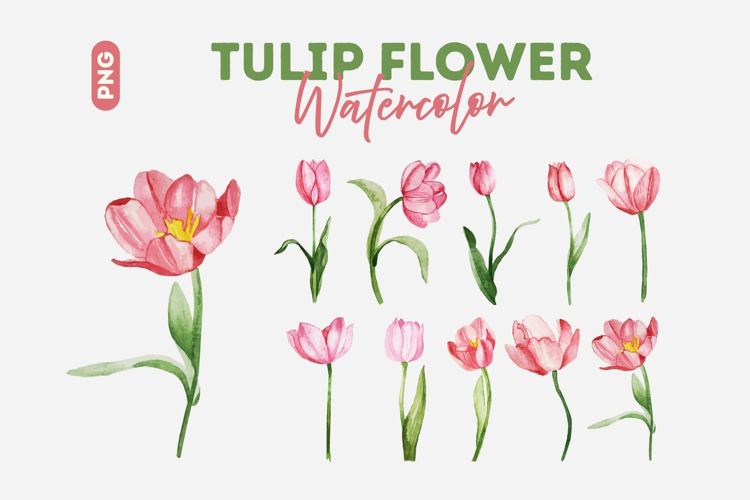 Each tulip is hand-painted in delicate watercolor tones, capturing the natural beauty, elegance, and freshness of blooming flowers. Perfect for adding a soft, artistic vibe to your creative projects — from invitations and packaging to branding, wall art, and social media posts!