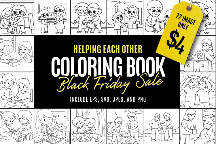 Helping Each Other Coloring Book Bundle – 72 Heartwarming Designs | Black Friday Special! 🖍️💛