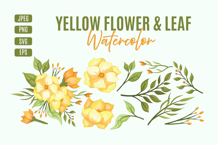 Bring a splash of sunshine to your creative projects with this Yellow Flower & Leaf Watercolor Bundle! 💛🌿