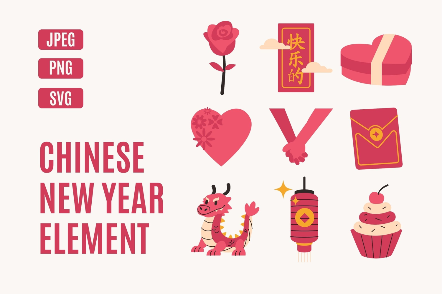 Filled with joyful illustrations and festive charm, this collection brings warmth, happiness, and good fortune to your creative projects. From adorable dragons and glowing lanterns to red envelopes, hearts, and cherry-topped cupcakes — every element is designed to spread positivity and festive vibes! ✨