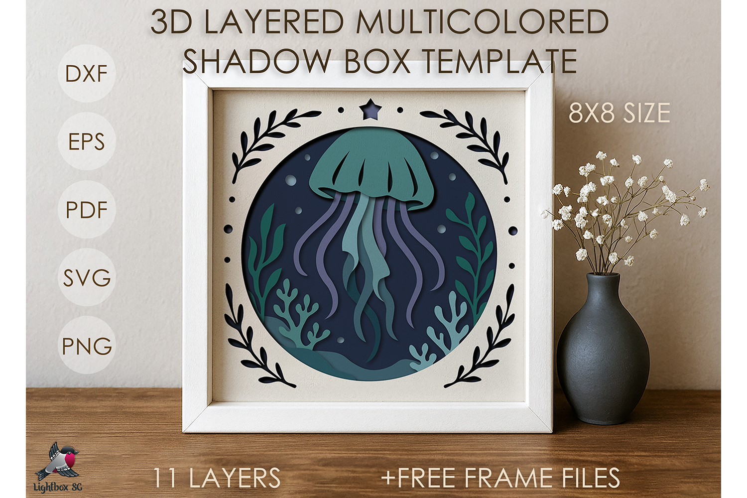 Jellyfish Medusa Colored Shadow box SVG Papercut template