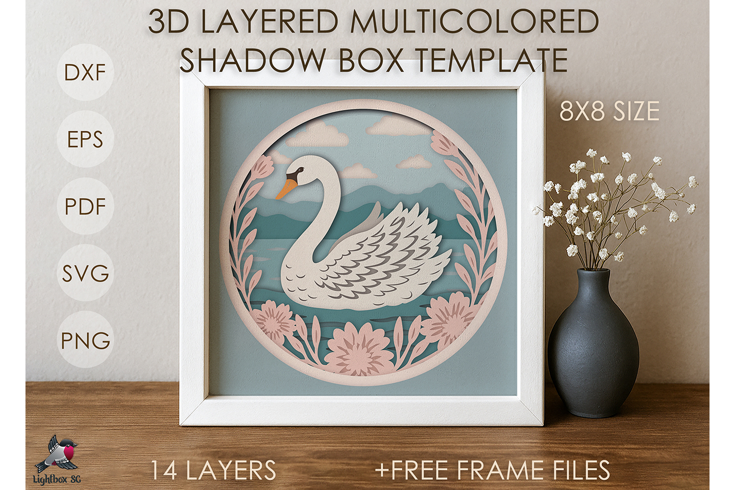 Similar Design Products to White Swan Lake Colored Shadow box SVG Papercut template