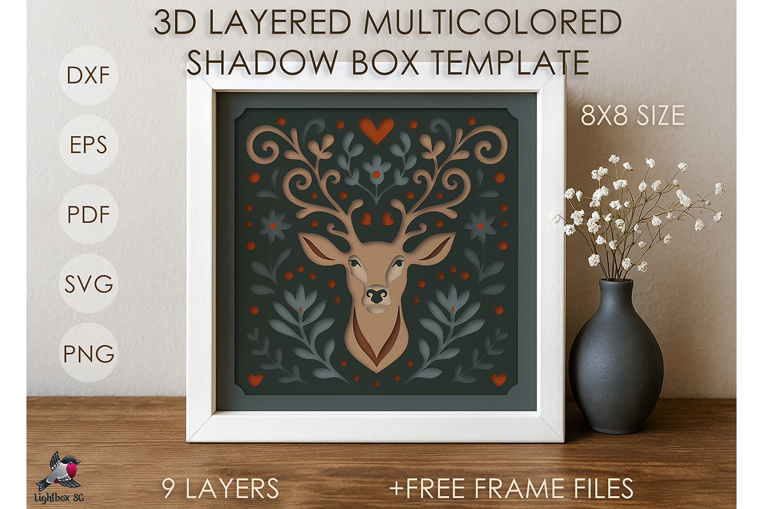Similar Design Products to Cute Deer Animal Colored Shadow box SVG Papercut template