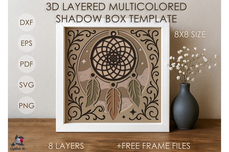 Similar Design Products to Ethnic Dreamcatcher Colored Shadow box SVG Papercut template