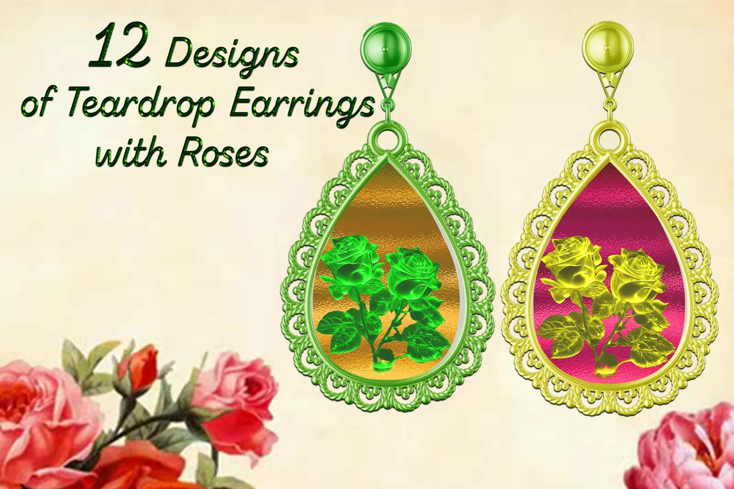 Hanging Earrings with Roses I 12 Earrings Designs, PNG example image 1